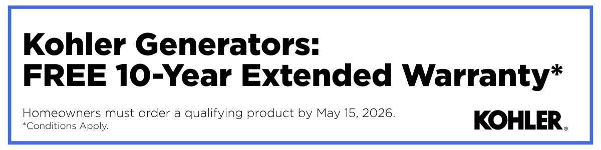 Limited Time Offer: Free 10-Year Extended Warranty with a qualifying KOHLER generator purchase* (up to a $1,400 USD VALUE!)
